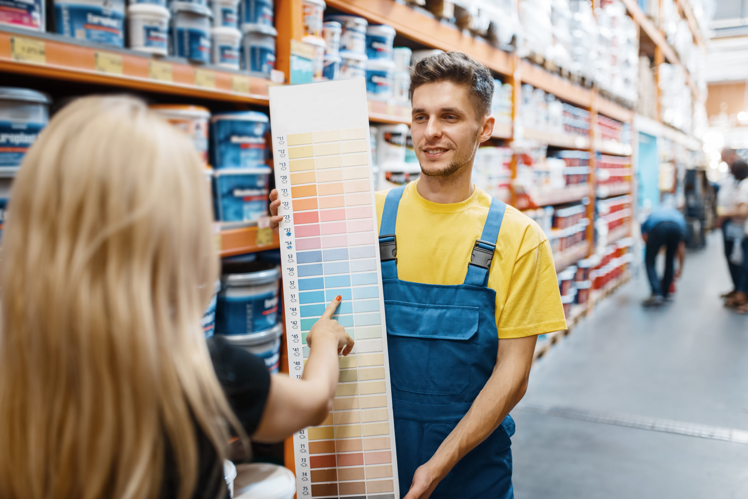 Grâce à notre machine à teinter professionnelle, votre couleur est préparée sur place en quelques minutes, à partir d’un nuancier, d’une photo ou d’un échantillon.